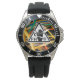 Has heft and feel of expensive stainless steel quartz wrist watches. Solid construction and good looks. Although it had a really top quality rubber strap, I substituted a stainless steel "Shark" style mesh strap, which I think is the most comfortable strap available. Perfect. True colors of original image. Clear, crisp image precisely aligned and spaced.