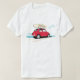 Exclusive Geetees T Shirt showing the iconic classic Fiat 500 in red with surf boards heading for the beach. This original cinquecento t shirt is the perfect gift for any classic car enthusiast