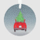 Fiat 500 with Christmas Tree Watercolor Ornament