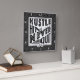 Text reads: Hustle, Hit And Never Quit, with a crossed field hockey sticks icon.