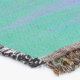 A quality printed throw has its advantages. This is a much finer weave throw than its loopier cousins, and though lighter, it is worth the investment for custom room accessorizing. The back is much prettier than the typical brown, and the fringe on the long sides very vivid, the selvage nicely done. Before photographing, I washed the throw in cold water, delicate, with a thicker woven throw the same size. On tumble dry low, this throw was dry in half the time as the other. This is a very practical quality if you use throws for furniture covers or to wrap up in frequently. The sleekness of the fabric makes it a great layer for accenting or protecting without the feeling of sitting on too much stuff. Perfect for napping or when you feel a light chill coming on. The color printing is beautiful and on this fabric, matched the design and color of my Photoshop image. This is an advantage for blending room fabrics and colors. The fringe on the short sides prints the colors from the design image and therefore varies from the side fringe. I streaked a white fractal line through the plaid pattern to give the illusion of weaving. This printed as crisp as an illusory thread, and put some white in the short side fringe, showing another advantage of print vs loomed- for artistic purposes, line lines, detail, and color integrity can be planned and preserved. My loomed throws have color limitations and more of a needlepoint texture. Print throws reproduce an exact image. The throw felt a little stiff straight out of the package, but this went away in the first delicate wash. Of course I searched the wash water for ink or bleeding and there was none.
