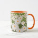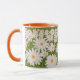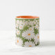 Field of Daisies Mug - This mug features a charming illustration of a field of white daisies with bright yellow-orange centres, set amidst a lush green grass. The design is a serene representation of a spring or summer meadow, evoking feelings of calmness and natural beauty. The interior and handle of the mug are coloured orange, adding a pop of warmth to the overall design, but you can change that if you prefer a different colour.