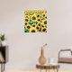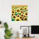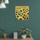 Print in a field of golden yellow sunflowers with chocolate brown centres and green leaves