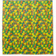 Shower curtain in a pattern of orange and yellow tulips and green leaves in a field