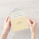Embrace the carefree spirit of bohemian style with this delicate All-in-One wedding invitation that depicts a soft, warm field of sunflowers. The All-in-One wedding invitations are both beautiful and practical by combining the wedding invitation with an easy to remove perforated RSVP postcard. They are also quick and easy to prepare for mailing. Simply address the invitation, fold the back flap and seal with the included clear stickers. Once your guests receive the pre-addressed invitation they simply tear off the perforated RSVP card and drop it in the mail.