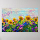Original art work consisting of my original photograph of the front sunflowers in a field and processed in an artsy colorful and painterly style. This would look great framed in a yellow matte and white frame in a home or office! Size is 12" x 8". Due to illustrated graphics and for maximum detail the image should not be sized larger. This print is printed on Archival heavy weight paper used by professionals and graphic artists, with a matte finish and smooth surface. It is fade resistant with over 90 years archival rating, so you can be assured of a quality print!