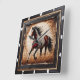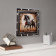Bring the beauty of nature into your home with our stunning wooden wall clock featuring a majestic Paint horse trotting through a sunlit field. The clock is framed by a sleek ½-inch flat black wooden border, while the embedded wood showcases deep carvings and rugged burn marks in rich hues of red, grey, and black, creating a striking contrast against the lighter wood. This unique piece not only captures the essence of rustic charm but also offers the durability of non-wood materials, ensuring it remains a timeless addition to your decor.