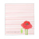 A custom botanical lined notepad a field poppy in bright red hand painted with watercolor on a white background. In Floriography, Language of Flowers, the field poppy represents "you are always in my memory" and sacrifice. It is also a symbol of remembrance for soldiers who lost their lives in war. You can edit or remove the text to fit your needs.