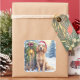 Field Spaniel Snowy Fence Santa Hat Christmas Art Square Sticker