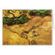 Field with Two Rabbits by Vincent van Gogh is a vintage fine art post impressionism landscape nature painting. Two rabbits are in a farm field with trees and bushes. Late summer with golden yellow grass in the meadows.