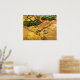 Field with Two Rabbits by Vincent van Gogh is a vintage fine art post impressionism landscape nature painting. Two rabbits are in a farm field with trees and bushes. Late summer with golden yellow grass in the meadows.