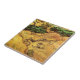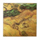 Field with Two Rabbits by Vincent van Gogh is a vintage fine art post impressionism landscape nature painting. Two rabbits are in a farm field with trees and bushes. Late summer with golden yellow grass in the meadows.
