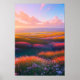 A vast field covered in an array of blooming flowers, ranging in shades of orange, pink, red, and yellow, mixed with lush green grass. The flat hill stretches endlessly towards the horizon, creating a breathtaking sight that is sure to capture the heart of anyone who sets eyes upon it.