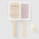 These fans were exactly as pictured. The quality is great. Perfect favor for a wedding!...I will make assembly a little easier by using a hot glue gun and finish them off with a ribbon. Beautifully printed. Crisp and clear text.