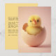 A fluffy yellow chick with an adorably fierce expression peeks out from a cracked eggshell against a soft pastel background. Perfect for Easter themes, baby products, or playful branding.