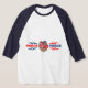 I bought the Men's Basic 3/4 Sleeve Raglan T-Shirt, White/Navy. It arrived on time for a gift and is of a great quality and fits perfectly! So cute! Zazzle has done it again! The printing was clear and filled in solidly.