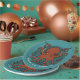 Paper plates with a nautical theme, featuring a cartoon of a rust red octopus with a mean frown, curling tentacles spread in all directions and fleshy coloured suckers exposed. A shoal of fish stream past in the background. For fans of octopuses and cephalopods with attitude. Personalise with a simple change to the editable text which curves around the image. Customise it to change the ocean green background colour which surrounds and shows through the semi-transparent background shape.