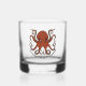A red octopus on a rocks glass or whiskey tumbler. Use "Personalise this template" to add your own text and create a unique, customised gift. Quench your thirst from this nautical themed whiskey glass, featuring a cartoon of a rust red octopus with a mean frown, curling tentacles spread in all directions and fleshy coloured suckers exposed.
