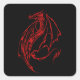 Fierce Red Tribal Dragon Silhouette Fantasy Square Sticker