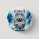 A vivid artwork featuring a roaring white leopard centred amidst a dynamic blue splatter design, emphasizing strength, wilderness, and creative flair.