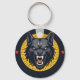 Fierce Wolf Illustration with Circular Design Key Ring