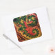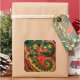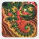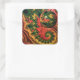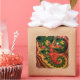 A vibrant and complex fractal design features swirling patterns and a floating sphere with a similarly intricate pattern. The colors are predominantly fiery orange and red, with accents of green in the fractal formations, giving the composition an energetic and dynamic feel.