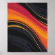 A bold and energetic abstract design chraacterised by flowing curves in shades of orange, red, and black. The dynamic streaks of warm colours create a sense of intensity and motion, resembling the movement of fire or molten lava. The dark background contrasts sharply with the bright hues, enhancing the dramatic effect of the composition.