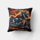 Fiery motorcycle revving in a blaze at sunset cushion