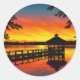 Fiery Red Lake Sunset with Dock Classic Round Sticker