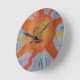 The clock did not take as long to arrive as I thought it might and was extremely well packaged. I didn't do the measurements so I didn't realize it is a little smaller than the average clock but that does not matter (just make sure you check if that's important to you).It is really nifty! It seems very solid and well made not flimsy at all. It has been going well and has kept good time in its few weeks on my wall. Nice product. Gets noticed too! Nicer in real life than the picture but true to the picture
