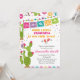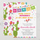 Celebrate your little señorita with this colourful Fiesta Baby Shower Invitation. Featuring a festive green cactus with pink flowers, bright papel picado banner, playful maracas, and vibrant confetti accents, this design is perfect for a Mexican boho-themed baby shower. Ideal for summer celebrations. BBS203