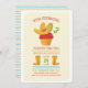 A bold illustrated kid's birthday party invitation with a big fiesta theme. Customisable with the child's age on the sombrero cupcake candle and details between cowboy boots.