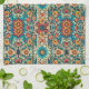 Brighten your kitchen with this Mexican Folk Art Floral kitchen towel, featuring a vibrant and symmetrical floral pattern inspired by traditional Mexican embroidery. The rich colours—turquoise, red, coral, and gold—bring festive energy to your culinary space. A central ribbon banner offers customisable text, perfect for adding a name, a fun kitchen phrase, or a personal touch. Whether displayed for style or put to daily use, this towel adds both charm and personality to your home.