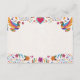 This Fiesta Colorful Flowers Botanical Spanish Wedding Enclosure Card vibrant design features two colorful birds in the top corners, framing a large red heart with a glowing flame above it, evoking a sense of love and passion. Surrounding the central area are intricate floral patterns and leaves, arranged symmetrically in bright hues like pink, orange, green, and blue, inspired by traditional Mexican folk art. The overall feel is festive and romantic, with a lively composition that draws the eye to the center, making it ideal for a wedding stationery.