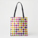 This image displays a colourful, repeating diamond pattern with alternating colours—deep purple, magenta, orange, yellow, and olive green—set against a white background. The diamonds are arranged in a diagonal, grid-like formation, creating a striking visual reminiscent of classic harlequin or vintage textile designs