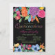 Fiesta Flowers Black Colourful Floral Quinceanera Invitation