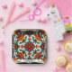 Add a pop of handcrafted charm to your celebration with Fiesta Frameware, the square plate that’s blooming with colour and folk-art finesse. A bold red flower anchors the centre, surrounded by a radiant ring of orange, yellow, and blue blossoms with leafy green accents. The scalloped edge and rustic brown trim give it a vintage vibe, while the white background lets every petal shine.