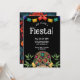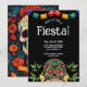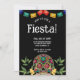 Festive holiday invitation for Fiesta! or any Mexican-themed event with gold border with a floral Mexican folk pattern on the front with a moustache .