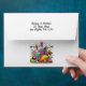 This white envelope opens to a bold black liner scattered with red, yellow & green chilli peppers, while the front flaunts a colourful taco-and-tequila vignette—complete with margaritas, sombrero, cactus, and fluttering papel picado. Personalise it with your own return address and spice up “Nacho Average Birthday,” Cinco de Mayo, or any hot-sauce-worthy celebration. Perfect for matching Fiesta invitations and guaranteed to heat up mailbox excitement!