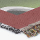 A quality printed throw has its advantages. This is a much finer weave throw than its loopier cousins, and though lighter, it is worth the investment for custom room accessorizing. The back is much prettier than the typical brown, and the fringe on the long sides very vivid, the selvage nicely done. Before photographing, I washed the throw in cold water, delicate, with a thicker woven throw the same size. On tumble dry low, this throw was dry in half the time as the other. This is a very practical quality if you use throws for furniture covers or to wrap up in frequently. The sleekness of the fabric makes it a great layer for accenting or protecting without the feeling of sitting on too much stuff. Perfect for napping or when you feel a light chill coming on. The color printing is beautiful and on this fabric, matched the design and color of my Photoshop image. This is an advantage for blending room fabrics and colors. The fringe on the short sides prints the colors from the design image and therefore varies from the side fringe. I streaked a white fractal line through the plaid pattern to give the illusion of weaving. This printed as crisp as an illusory thread, and put some white in the short side fringe, showing another advantage of print vs loomed- for artistic purposes, line lines, detail, and color integrity can be planned and preserved. My loomed throws have color limitations and more of a needlepoint texture. Print throws reproduce an exact image. The throw felt a little stiff straight out of the package, but this went away in the first delicate wash. Of course I searched the wash water for ink or bleeding and there was none.