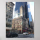 Features an original colour photograph of department stores along Fifth Avenue. Photographed in Manhattan, New York City.