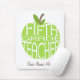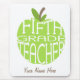 A mousepad for 5th grade teachers featuring an illustration of a green apple with oversize white text "Fifth Grade Teacher" in white. Personalise the brown text below with your name.