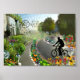 Poster of biking through an urban permaculture San Francisco of 2048.