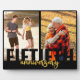 Modern photo plaque for your golden wedding anniversary. The design features modern oversized typography and brush script in black and gold. The photo template is set up for you to add two of your favourite photos, which are displayed in portrait format. A lovely opportunity to showcase an old photo with a recent photo.