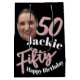 Fifty 50th Birthday photo script rose pink custom Medium Gift Bag