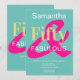 This is a bright and modern, 50th birthday design with a fifty and fabulous typography motif. It is in bright and bold hot pink, green and yellow with stylish typography. It has the message "Samantha Fifty & Fabulous" with space for you to add your party and RSVP info on the front. On the back the typography motif is repeated along with the message "Let's celebrate!" Perfect for a chic 50th birthday party celebration. To personalise, simply add your name, party and RSVP details by using the personalise this text box. To change the colour or font, check out the editing tool. For help with personalisation, matching products, or for a custom design email: ursuladawnmoon@gmail.com