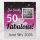 #50 or Fifty and Fabulous! Celebrate with fun black, pink, and white formal, but fun wine labels. Pale pink daisy with faux sparkle centre stands out against the soft hombre background. Pink and white star accents twinkle in the background of this original graphic design. White text 50 with purple and black cursive typography “fabulous”. Personalise the event with the Birthday girl’s name and date of birth.