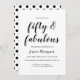 Celebrate your 50th Birthday in style with this Fifty and Fabulous black script modern 50th birthday invitation. Personalizable with your name and fiftieth birthday party celebration details. To the front is 'Fifty and Fabulous' in an elegant and playful script text, complemented with clean and minimal serif typography for all your details. All text colours can be changed to anything you wish using the edit menu. The reverse is finished with a black polka dot pattern - a fun and fabulous choice for your fiftieth celebration!
