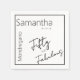 Make a bold statement with this modern “Fifty and Fabulous” birthday party napkin featuring a striking black and white portrait background with oversized handwritten script typography.