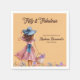 Celebrate in style with this Fifty and Fabulous 50th birthday napkin, designed for women who love elegance and charm. The front features a woman in a red and pink summer/autumn dress holding a basket of flowers, set against a soft cream / yellow background with a border of matching wildflowers. Script fonts highlight the title and name, while serif fonts keep the party details clear and classic.